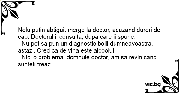 Nelu putin abtiguit merge la doctor, acuzand dureri de cap. Doctorul il consulta, dupa care ii spune: