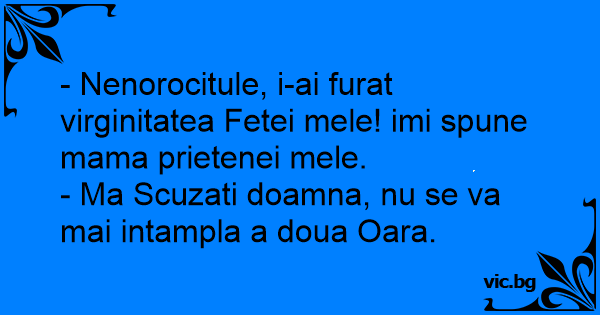 - Nenorocitule, i-ai furat virginitatea Fetei mele! imi spune mama prietenei mele.