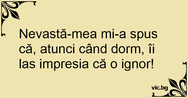 Nevastă-mea mi-a spus că, atunci când dorm, îi las impresia că o ignor!