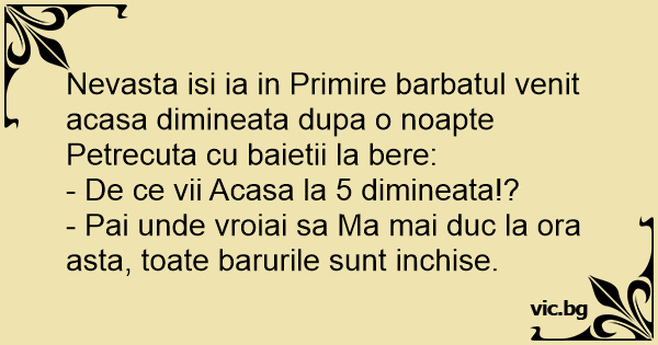 Nevasta isi ia in Primire...