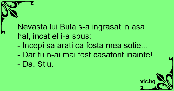 Nevasta lui Bula s-a ingrasat in asa hal, incat el i-a spus: