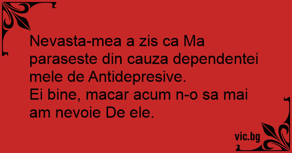 Nevasta-mea a zis ca Ma paraseste din cauza dependentei mele de Antidepresive.