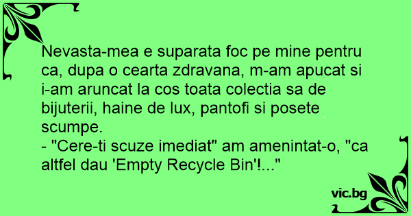 - "Cere-ti scuze imediat" am amenintat-o, "ca altfel dau 'Empty Recycle Bin'!..."