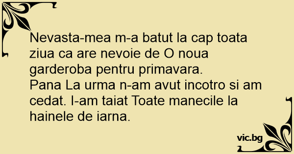 Nevasta-mea m-a batut la cap toata ziua ca are nevoie de O noua garderoba pentru primavara.