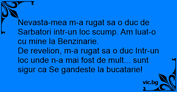 Nevasta-mea m-a rugat sa o duc de Sarbatori intr-un loc scump. Am luat-o cu mine la Benzinarie.