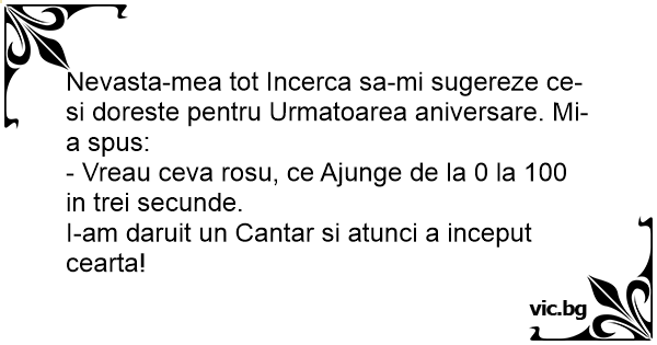 Nevasta-mea tot Incerca sa-mi sugereze ce-si doreste pentru Urmatoarea aniversare. Mi-a spus: