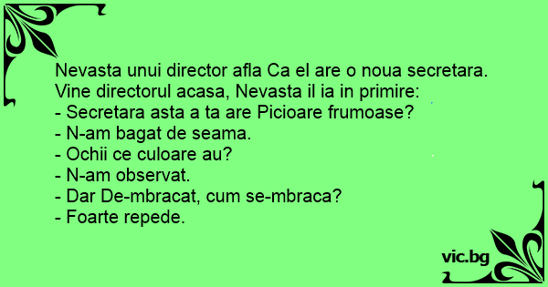 Nevasta unui director afla Ca el are o noua secretara. Vine directorul acasa, Nevasta il ia in primire: