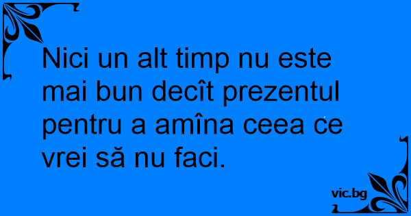 Nici un alt timp nu este mai bun decît prezentul pentru a amîna ceea ce vrei să nu faci.