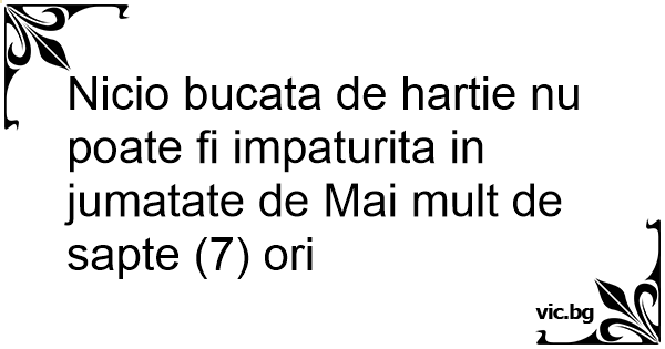 Nicio bucata de hartie nu poate fi impaturita in jumatate de Mai mult de sapte (7) ori