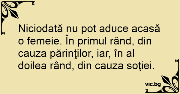 Niciodată nu рот aduce acasă o femeie. În primul rând, din cauza părinţilor, iar, în al doilea rând, din cauza soţiei.