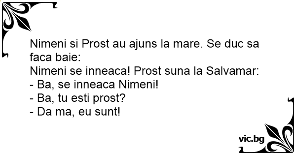 Nimeni si Prost au ajuns la mare. Se duc sa faca baie: