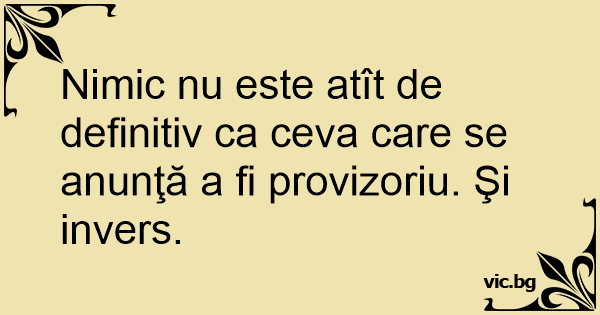 Nimic nu este atît de definitiv ca ceva care se anunţă a fi provizoriu. Şi invers.