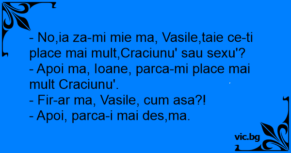 - No,ia za-mi mie ma, Vasile,taie ce-ti place mai mult,Craciunu' sau sexu'?