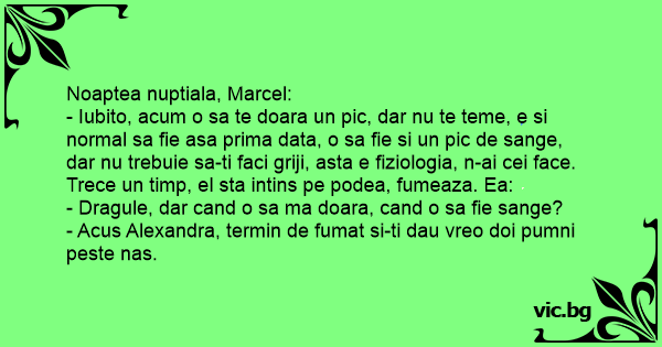 - Iubito, acum o sa te doara un pic, dar nu te teme, e si normal sa fie asa prima data, o sa fie si un pic de sange, dar nu trebuie sa-ti faci griji, asta e fiziologia, n-ai cei face.