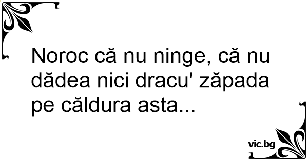 Noroc că nu ninge, că nu dădea nici dracu' zăpada pe căldura asta...