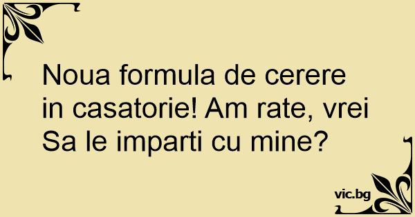Noua formula de cerere in casatorie! Am rate, vrei Sa le imparti cu mine?