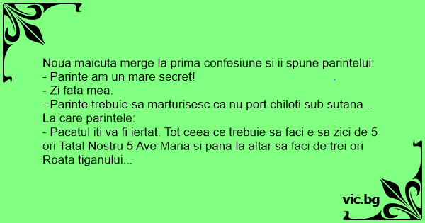 - Parinte trebuie sa marturisesc ca nu port chiloti sub sutana...
