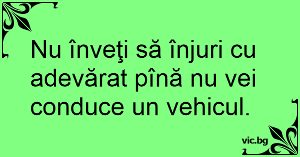 Nu înveţi să înjuri cu adevărat pînă nu vei conduce un vehicul.
