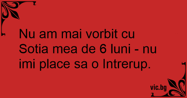 Nu am mai vorbit cu Sotia mea de 6 luni - nu imi place sa o Intrerup.