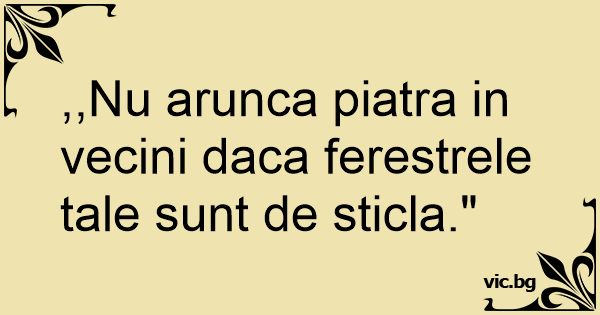 ,,Nu arunca piatra in vecini daca ferestrele tale sunt de sticla."