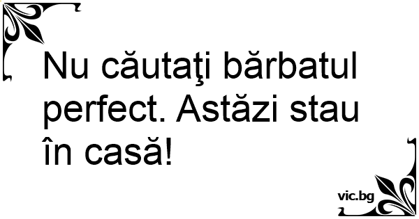 Nu căutaţi bărbatul perfect. Astăzi stau în casă!