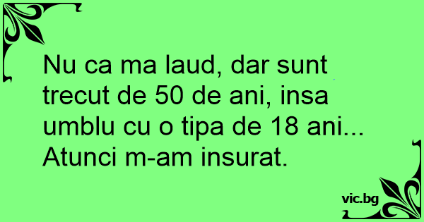 Nu ca ma laud, dar sunt trecut de 50 de ani, insa umblu cu o tipa de 18 ani... Atunci m-am insurat.