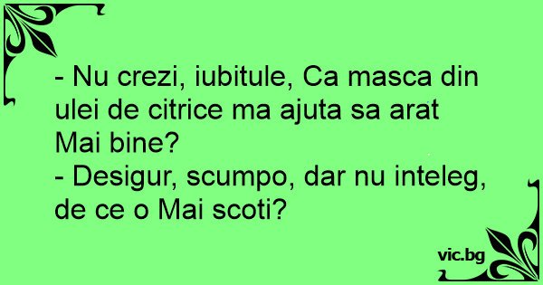 - Nu crezi, iubitule, Ca masca din ulei de citrice ma ajuta sa arat Mai bine?