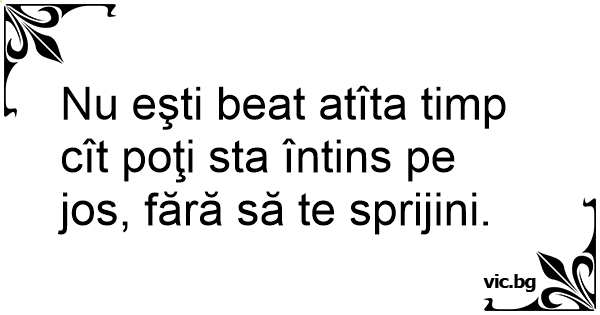 Nu eşti beat atîta timp cît poţi sta întins pe jos, fără să te sprijini.