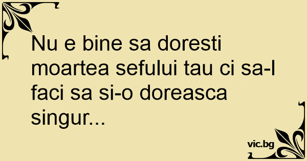 Nu e bine sa doresti moartea sefului tau ci sa-l faci sa si-o doreasca singur...
