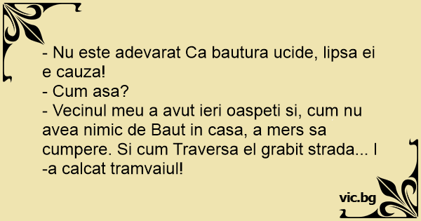 - Vecinul meu a avut ieri oaspeti si, сuм nu avea nimic de Baut in casa, a mers sa cumpere. Si сuм Traversa el grabit strada... l-a calcat tramvaiul!