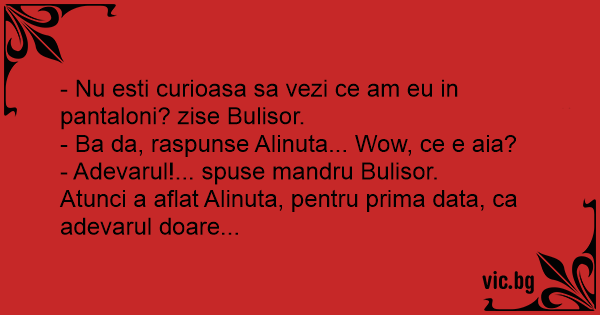 - Nu еsтi curioasa sa vezi ce am eu in pantaloni? zise Bulisor.
