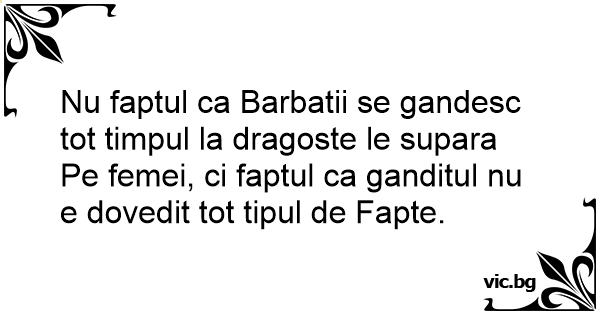 Nu faptul ca Barbatii se gandesc tot timpul la dragoste le supara Pe femei, ci faptul ca ganditul nu e dovedit tot tipul de Fapte.