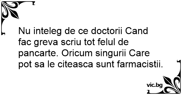 Nu inteleg de ce doctorii Cand fac greva scriu tot felul de pancarte. Oricum singurii Care рот sa le citeasca sunt farmacistii.