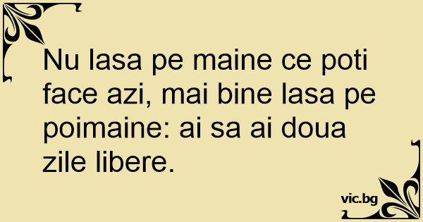 Nu lasa pe maine ce poti face azi, mai bine lasa pe poimaine: ai sa ai doua zile libere.
