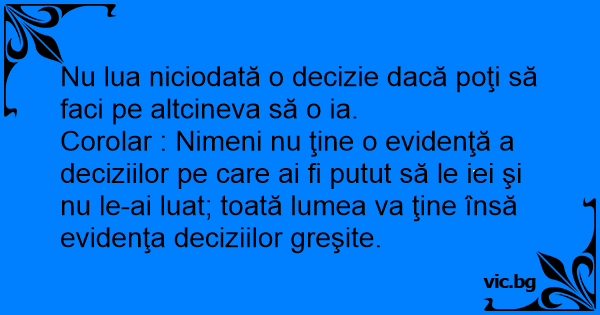 Nu lua niciodată o decizie dacă poţi să faci pe altcineva să o ia.
