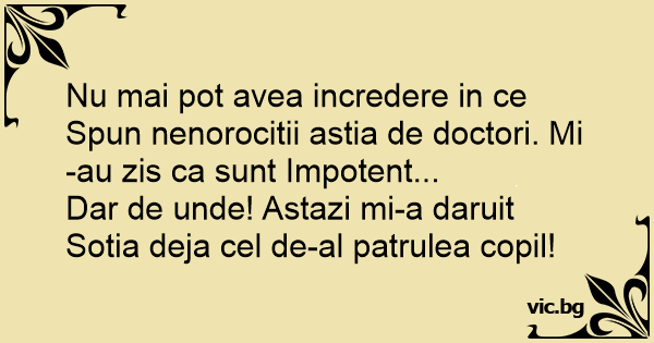 Nu mai рот avea incredere in ce Spun nenorocitii astia de doctori. Mi-au zis ca sunt Impotent...