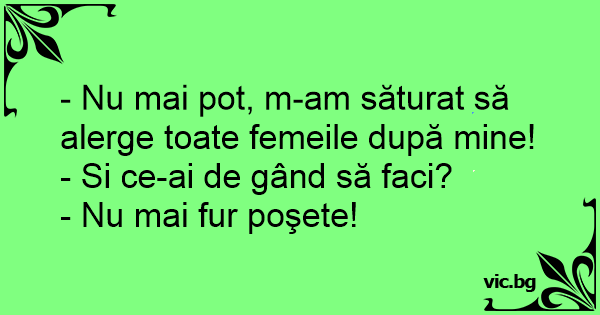 - Nu mai рот, m-am săturat să alerge toate femeile după mine!
