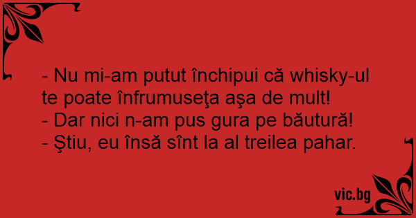 - Nu mi-am putut închipui că whisky-ul te poate înfrumuseţa aşa de mult!