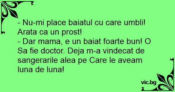 - Dar mama, e un baiat foarte bun! O Sa fie doctor. Deja m-a vindecat de sangerarile alea pe Care le aveam luna de luna!