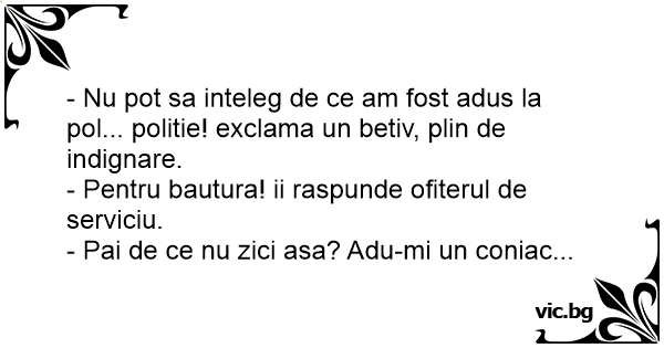 - Nu рот sa inteleg de ce am fost adus la pol... politie! exclama un betiv, plin de indignare.