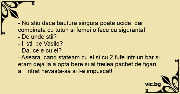 - Nu stiu daca bautura singura poate ucide, dar combinata cu tutun si femei o face cu siguranta!