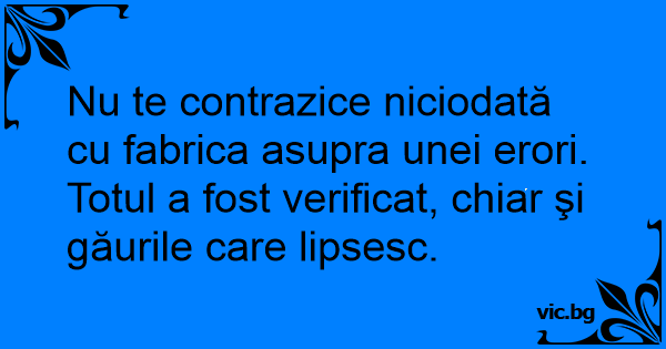 Nu te contrazice niciodată cu fabrica asupra unei erori. Totul a fost verificat, chiar şi găurile care lipsesc.