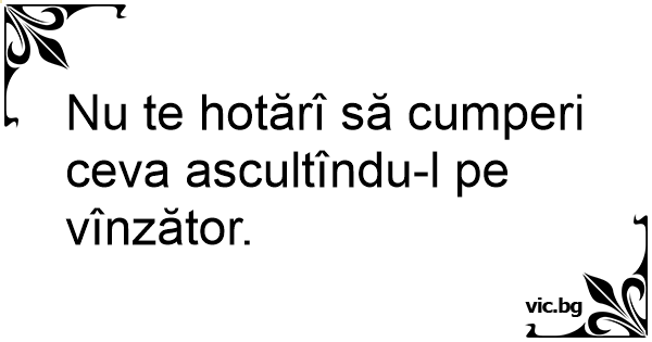 Nu te hotărî să cumperi ceva ascultîndu-l pe vînzător.