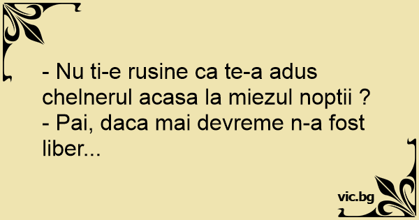- Nu ti-e rusine ca te-a adus chelnerul acasa la miezul noptii ?