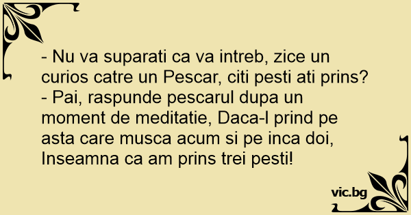 - Pai, raspunde pescarul dupa un moment de meditatie, Daca-l prind pe asta care musca acum si pe inca doi, Inseamna ca am prins trei pesti!