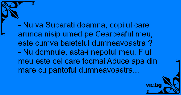 - Nu va Suparati doamna, copilul care arunca nisip umed pe Cearceaful meu, este cumva baietelul dumneavoastra ?