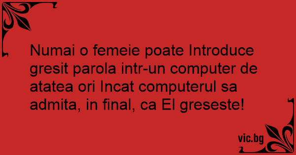 Numai o femeie poate Introduce gresit parola intr-un computer de atatea ori Incat computerul sa admita, in final, ca El greseste!