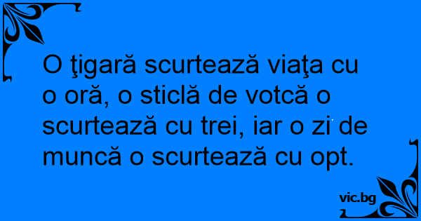 O ţigară scurtează viaţa cu o oră, o sticlă de votcă o scurtează cu trei, iar o zi de muncă o scurtează cu opt.