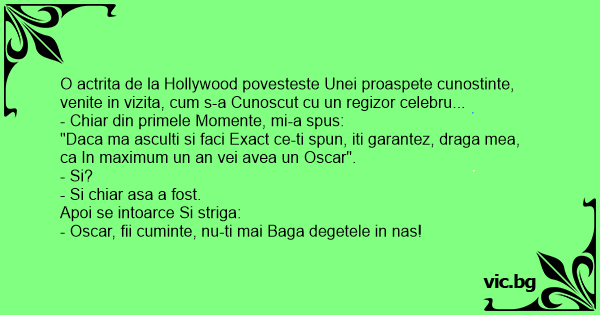 "Daca ma asculti si faci Exact ce-ti spun, iti garantez, draga mea, ca In maximum un an vei avea un Oscar".