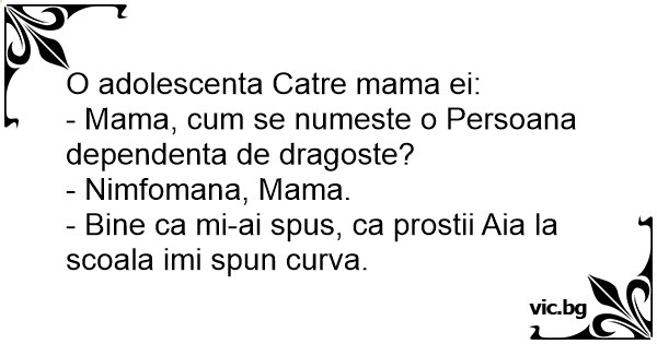 - Bine ca mi-ai spus, ca prostii Aia la scoala imi spun curva.